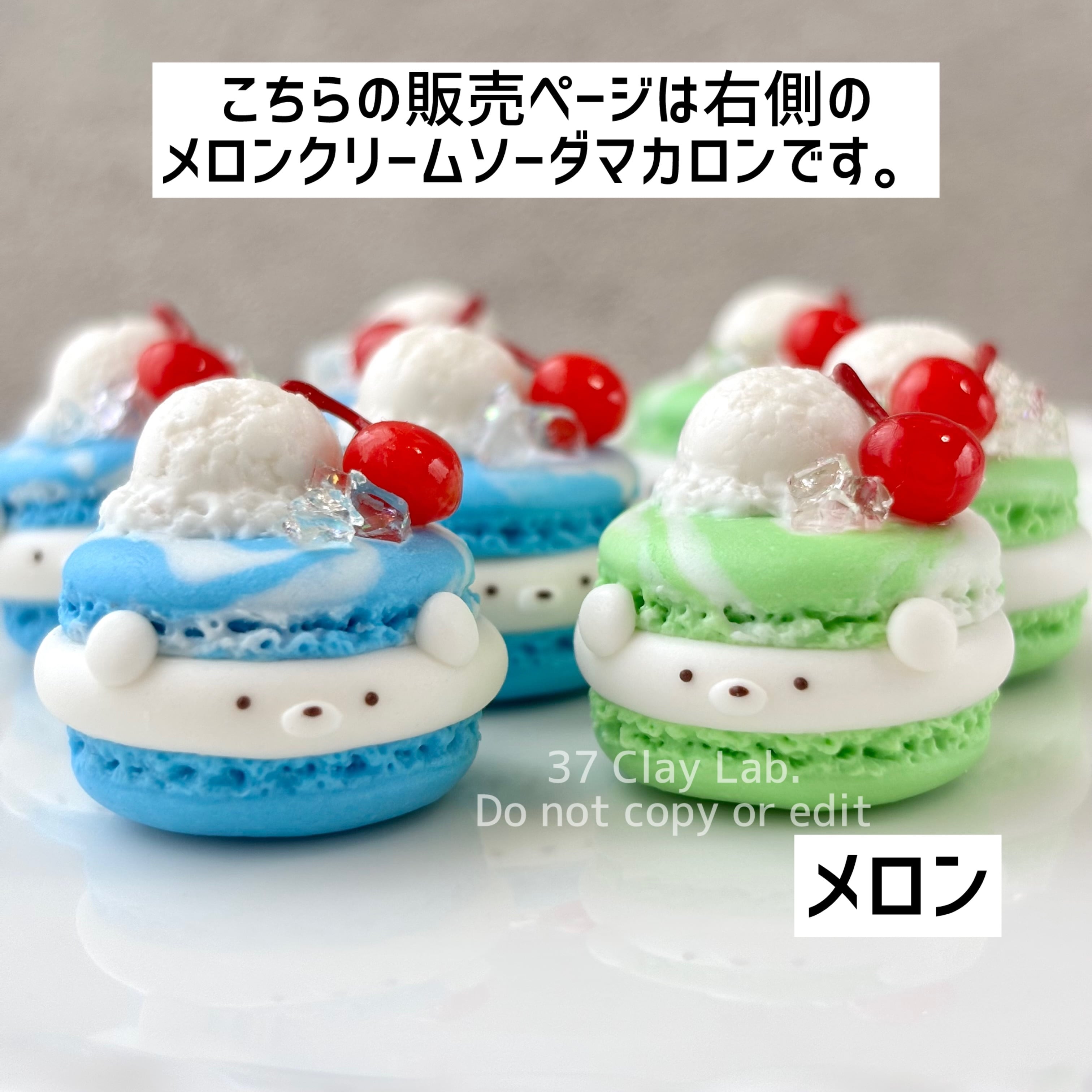 メロンクリームソーダをちーくまを挟んだマカロンで表現してみました。