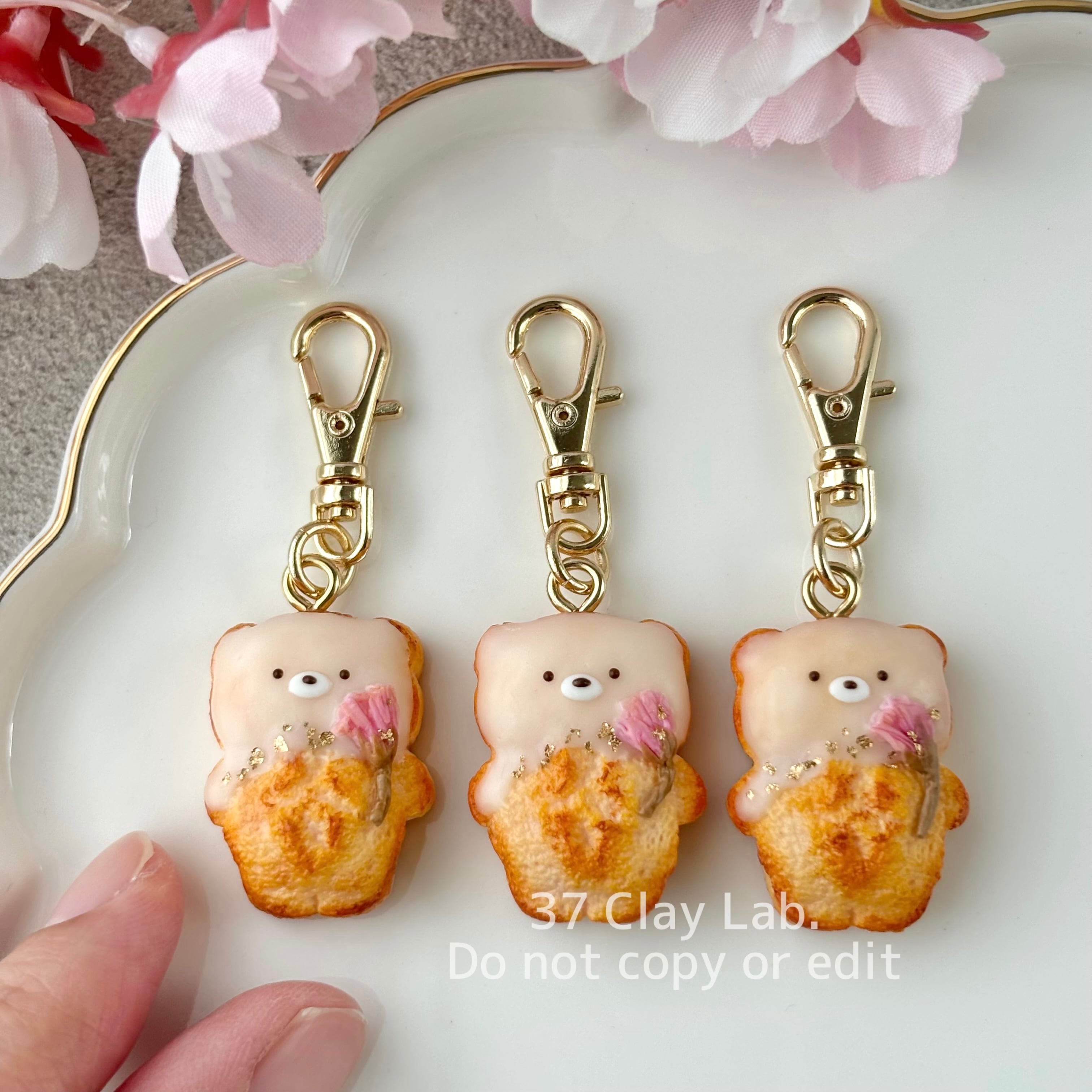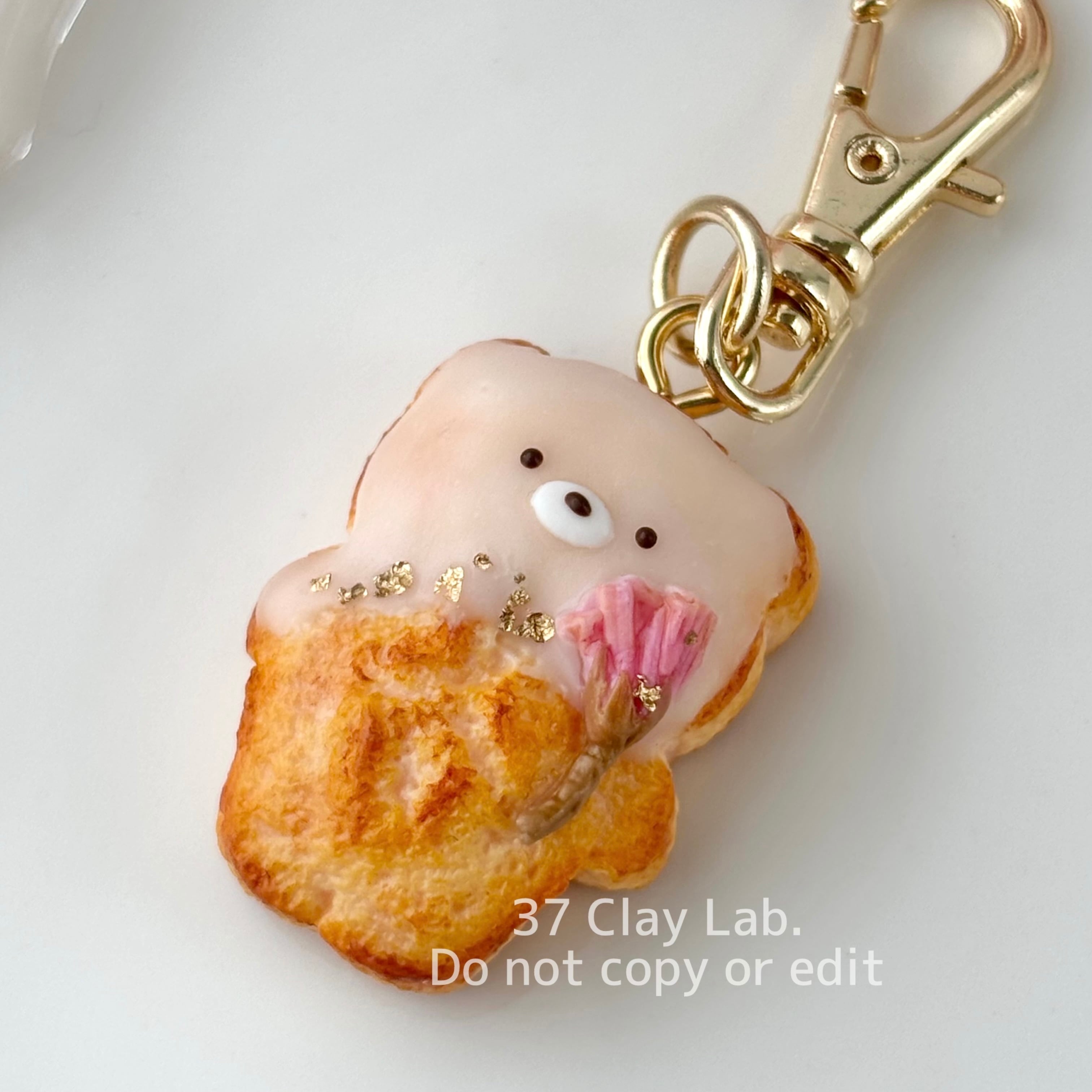 お顔はグレーズし、桜の花をトッピングして、春のやさしい甘さと華やかさを感じられるデコレーションにしました。
